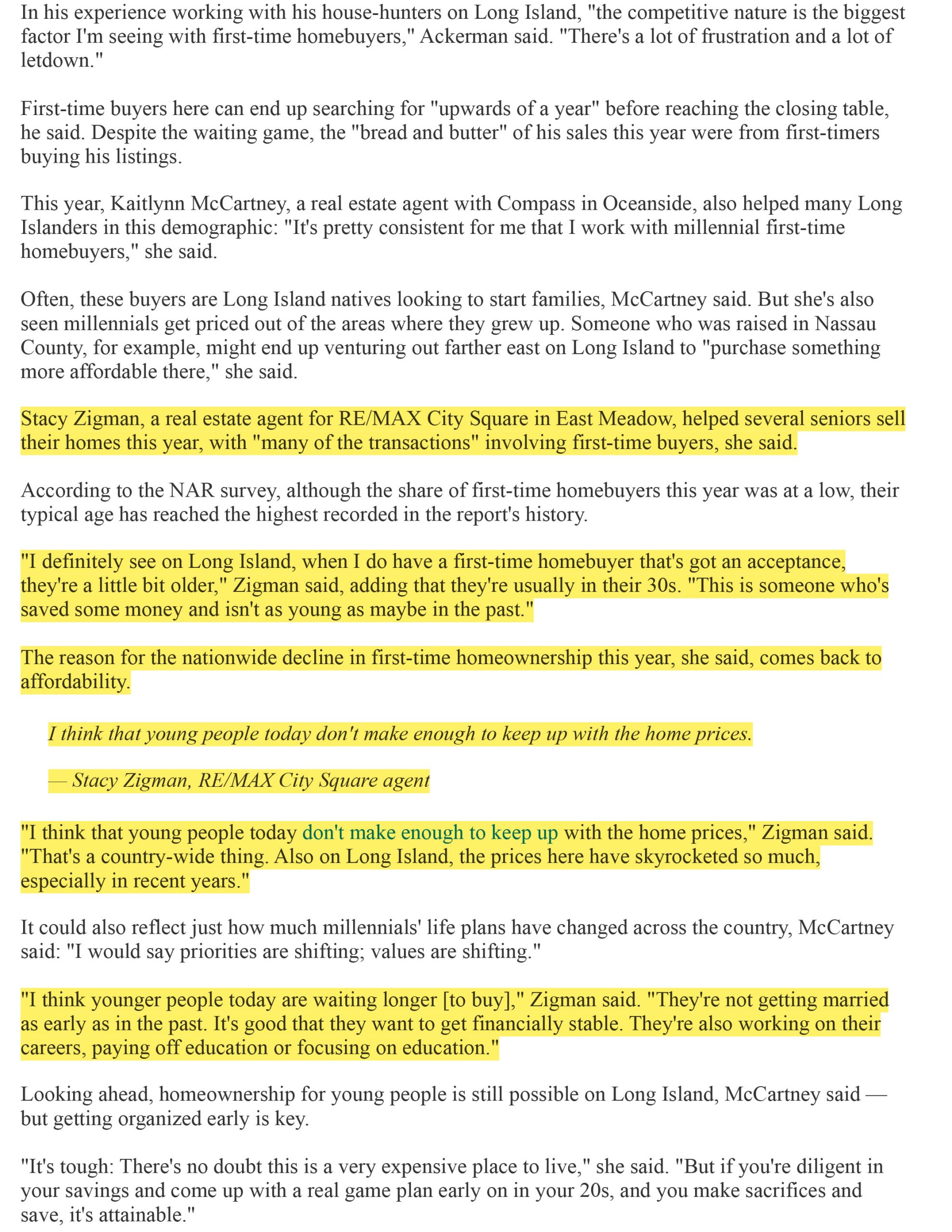 If you are a member of the media and would like to talk, please call Stacy at 516-270-8022 or send her an email to stacyzigman@remax.net.